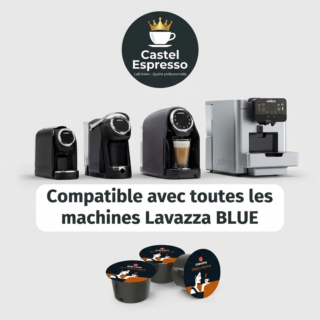 Prix & Économie Lavazza Blue officiel : 372€ (0,31€/capsule) Covim Orocrema : 240,54€ TTC (0,20€/capsule) ÉCONOMISEZ 131€ (35%) - MÊME QUALITÉ !